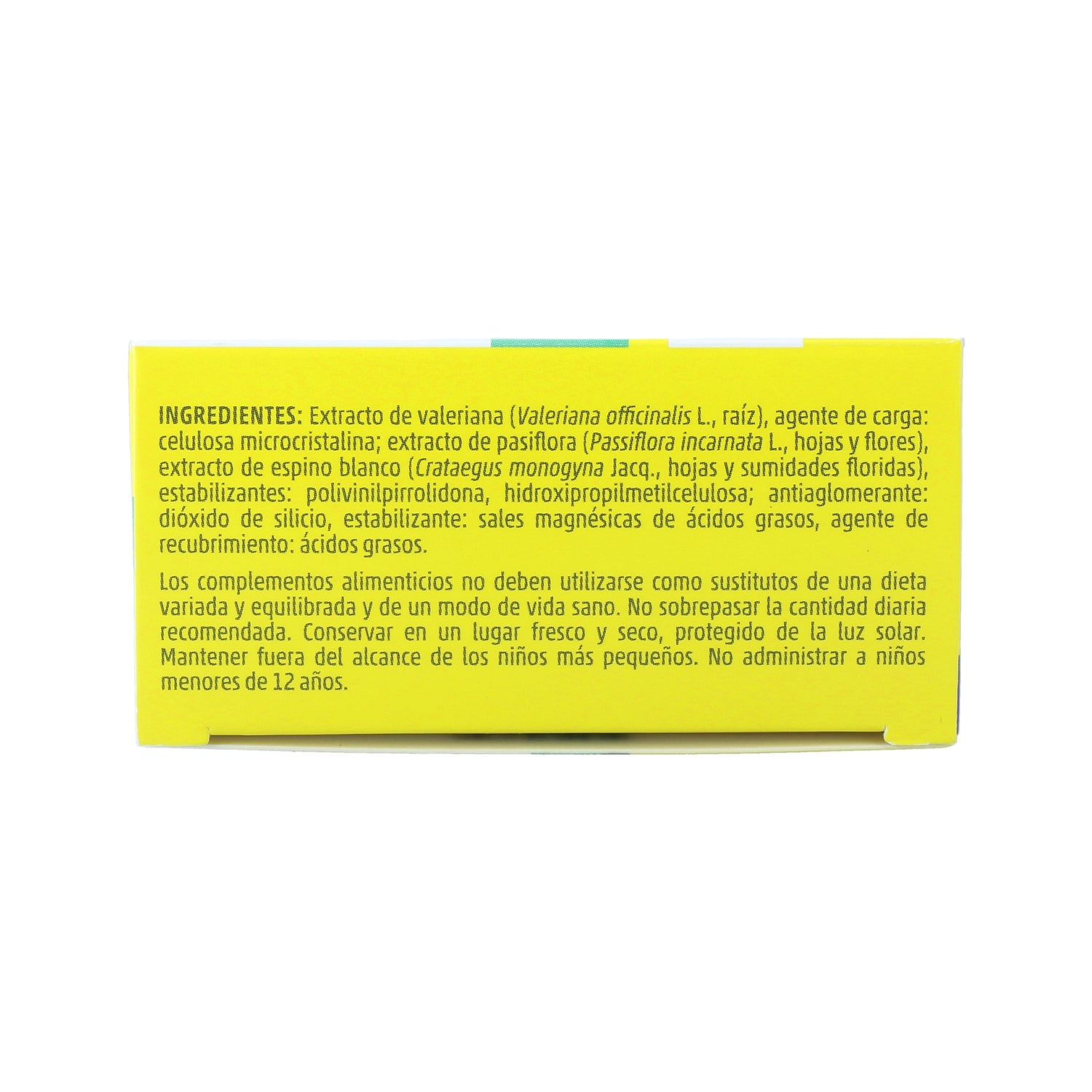 Il contient trois principes actifs : la valériane, idéale pour les périodes de stress passager, car elle aide à se détendre ; la passiflore, qui est utilisée pour maintenir l'activité mentale en période de stress ; et l'aubépine, avec une action sur le repos et l'amélioration de la qualité du sommeil.