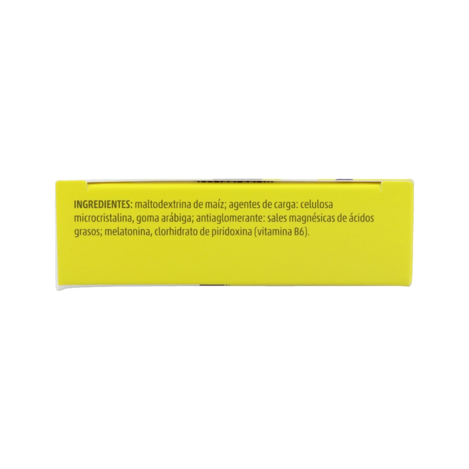 Mélatonine (1,95 mg), vitamine B6 (0,7 mg), maltodextrine de maïs, agent de charge : gomme arabique ; extrait de riz (Oryza sativa L., graines), mélatonine, huile de tournesol, chlorhydrate de pyridoxine (vitamine B6).