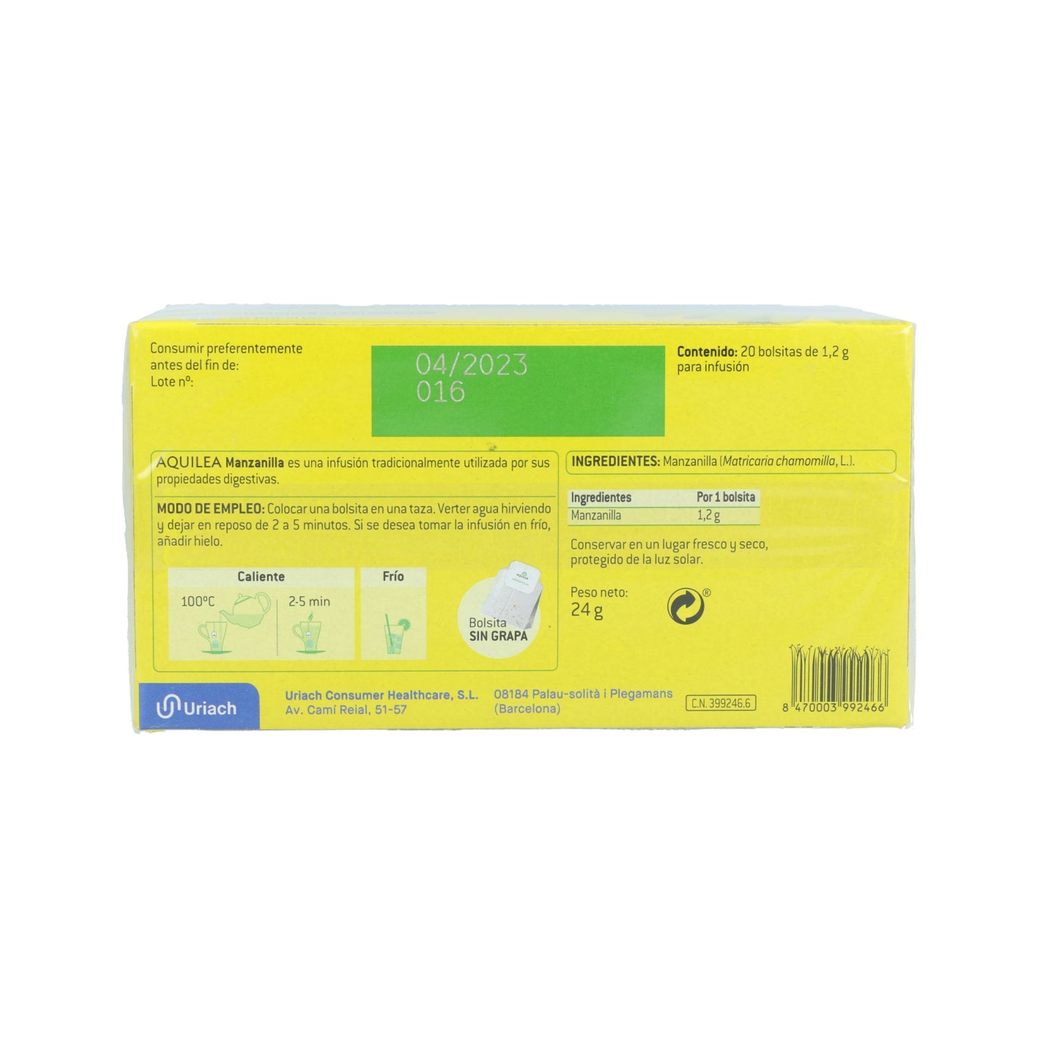 Aquilea Infusiones Manzanilla 20 sachets est une infusion digestive qui aide à réduire les spasmes gastro-intestinaux, les flatulences et les coliques.