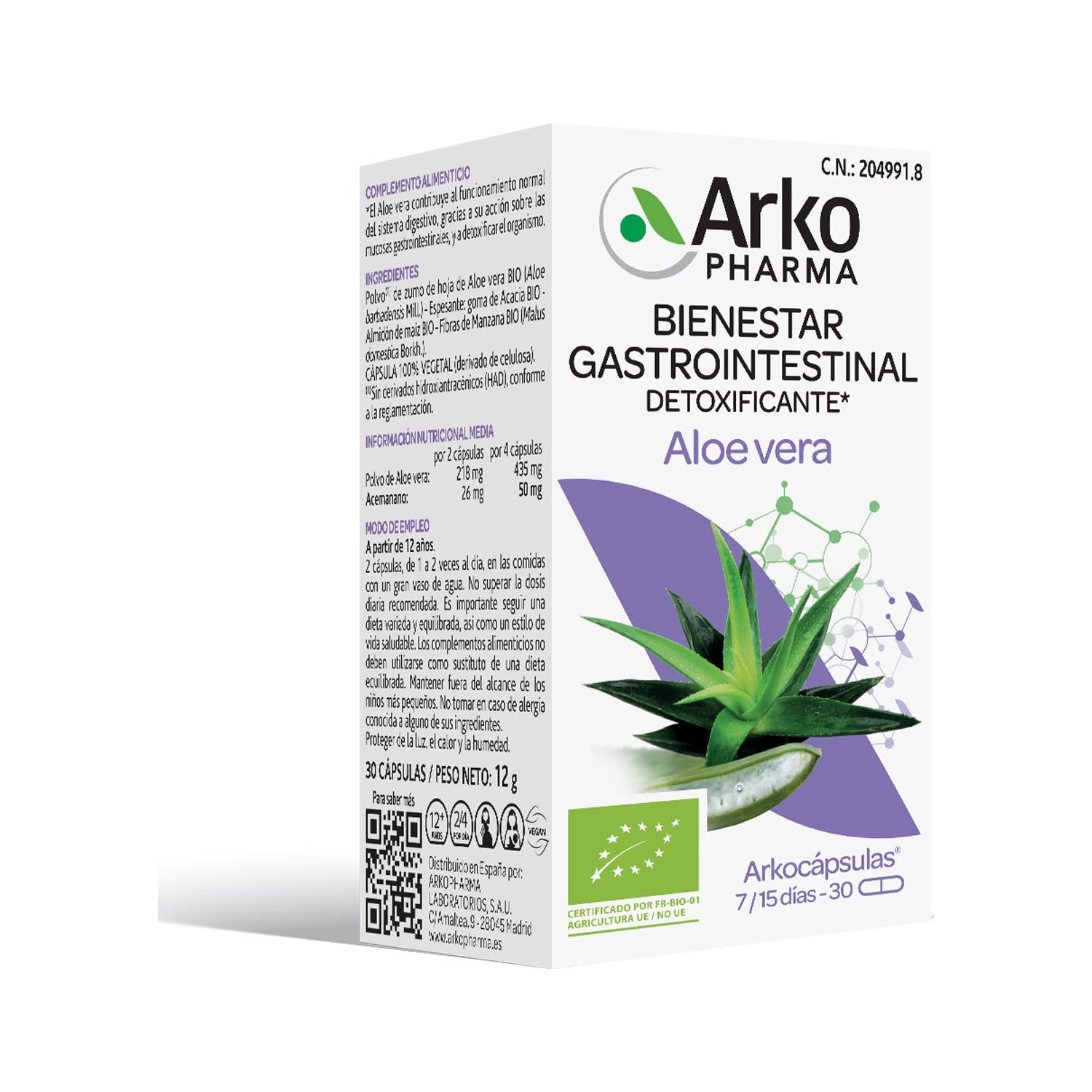 Aloe vera d'origine biologique d'Arkopharma, complément alimentaire à l'action régulatrice, dépurative et tonifiante générale sur les organes et les systèmes corporels.