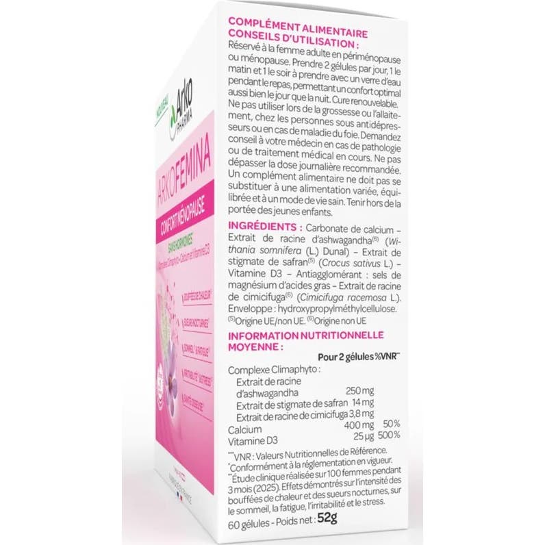 Le complexe Climaphyto combine le safran, qui contribue à l'équilibre émotionnel et à améliorer le sommeil, et l'ashwagandha, qui aide à mieux résister au stress et à maintenir l'énergie en cas de fatigue passagère.