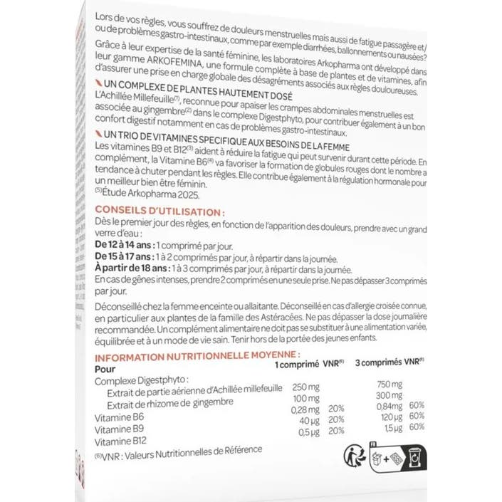 Arkopharma Arkofemina Cycle Menstruel 30comp est un complément alimentaire qui aide à adoucir les symptômes pendant la menstruation.
