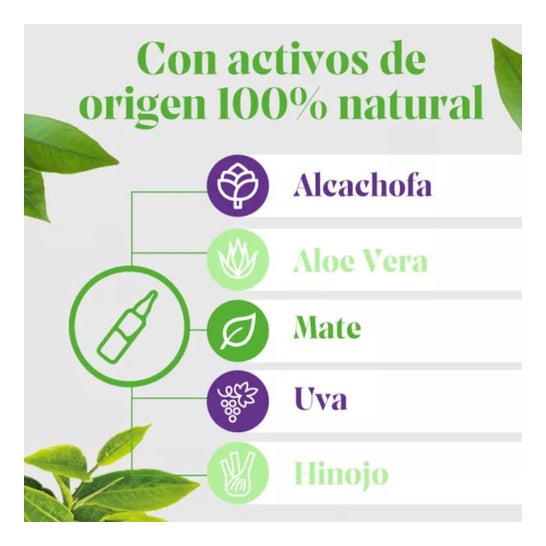 Sa formule aux propriétés digestives et dépuratives contient des ingrédients naturels, tels que l'artichaut, le maté, le fenouil et le raisin.