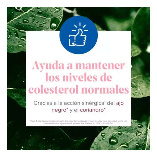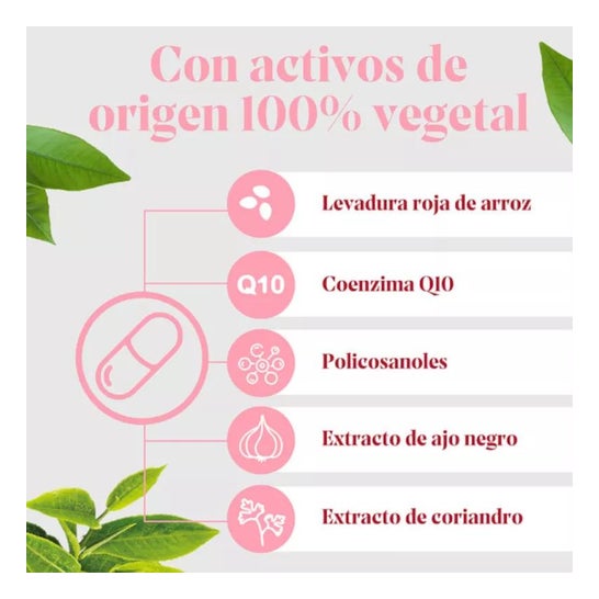 Extrait de bulbe d'ail noir (Allium Sativum L.), levure de riz rouge riche en monacoline (Monascus Purpureus Went), extrait de fruit de coriandre (Coriandrum Sativum L.), policosanols de canne à sucre (Saccharum Officinarum L.), coenzyme Q10, amidon de maïs, enrobage de gélule végétale (Hydroxypropyl Methylcellulose).