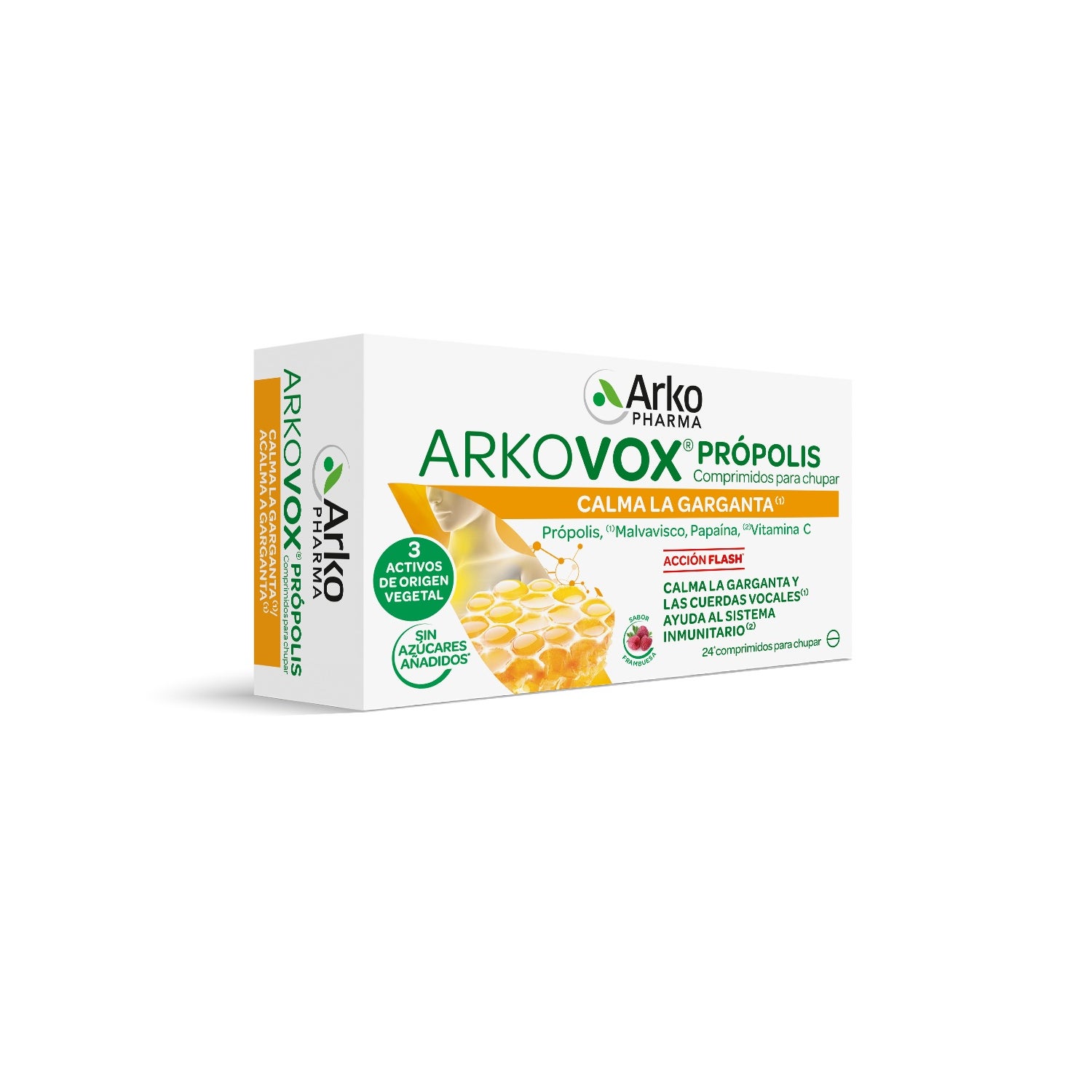 Arkovox propolis + vitamine C saveur framboise est un remède naturel spécialement conçu pour apaiser la zone interne du cou, grâce à une composition émolliente à base de propolis, de mauve, de papaïne et de vitamine C, qui sont tous des ingrédients nécessaires pour prévenir l'oxydation des cellules et retrouver la stabilité de l'organisme, avec une agréable saveur de framboise.
