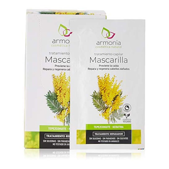 Masque capillaire dont les propriétés permettent de redonner brillance, vitalité et souplesse aux cheveux décolorés, teints ou lavés en permanence.