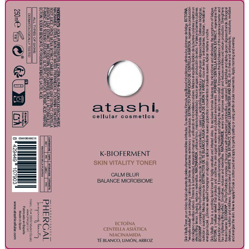 Atashi K-Bioferment Skin Vitality Toner Calm Blur 250ml est un tonique facial apaisant pour les peaux très sensibles et irritées. Sa formule exclusive, basée sur la cosmétique coréenne, équilibre le microbiome et élimine les symptômes de fatigue.