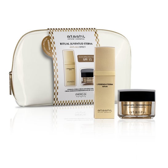 Atashi Rituel Jeunesse Éternelle Set L'Essenza Eterna + Crème + Trousse est un coffret exclusif conçu pour revitaliser la peau, apportant jeunesse, beauté et luminosité à chaque application.