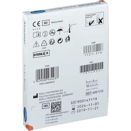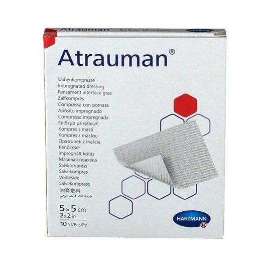 Atrauman 5 x 5 cm est un bandage de Paul HARTMANN AG. Atrauman sont des compresses de sel à usage unique, stériles et sans principes actifs, pour le traitement des blessures superficielles, aiguës et chroniques de tout type.