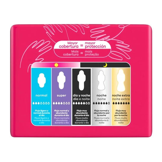 Avec un noyau à absorption rapide et une couche supérieure de couverture sèche, votre zone intime sera non seulement plus sèche et protégée, mais aussi plus longtemps. De cette façon et grâce à ses ailes, vous pourrez dormir paisiblement sans avoir à penser à votre culotte.