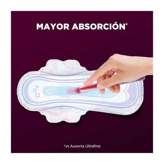 Serviettes avec ailes qui aident pendant les jours de flux normal ou abondant. Elles sont conçues pour protéger jusqu'à 8 heures, contribuant à ce que la zone intime soit protégée et confortable pendant la journée.