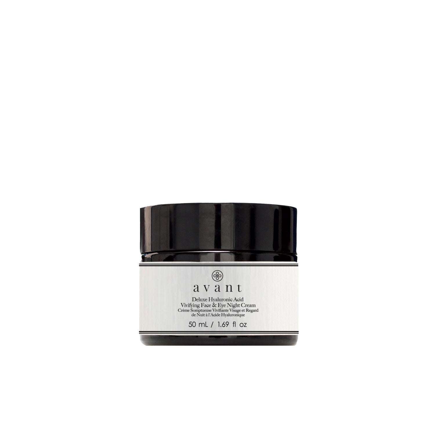 Avant Skincare Deluxe Crème de Nuit pour le Visage et les Yeux à l'Acide Hyaluronique de 50ml est une crème hydratante idéale pour lutter contre les signes de vieillissement du visage et de la délicate zone des yeux. Sa formulation comprend Acide Hyaluronique, qui nourrit profondément la peau, ainsi que d'autres ingrédients caractéristiques qui contribuent à améliorer :