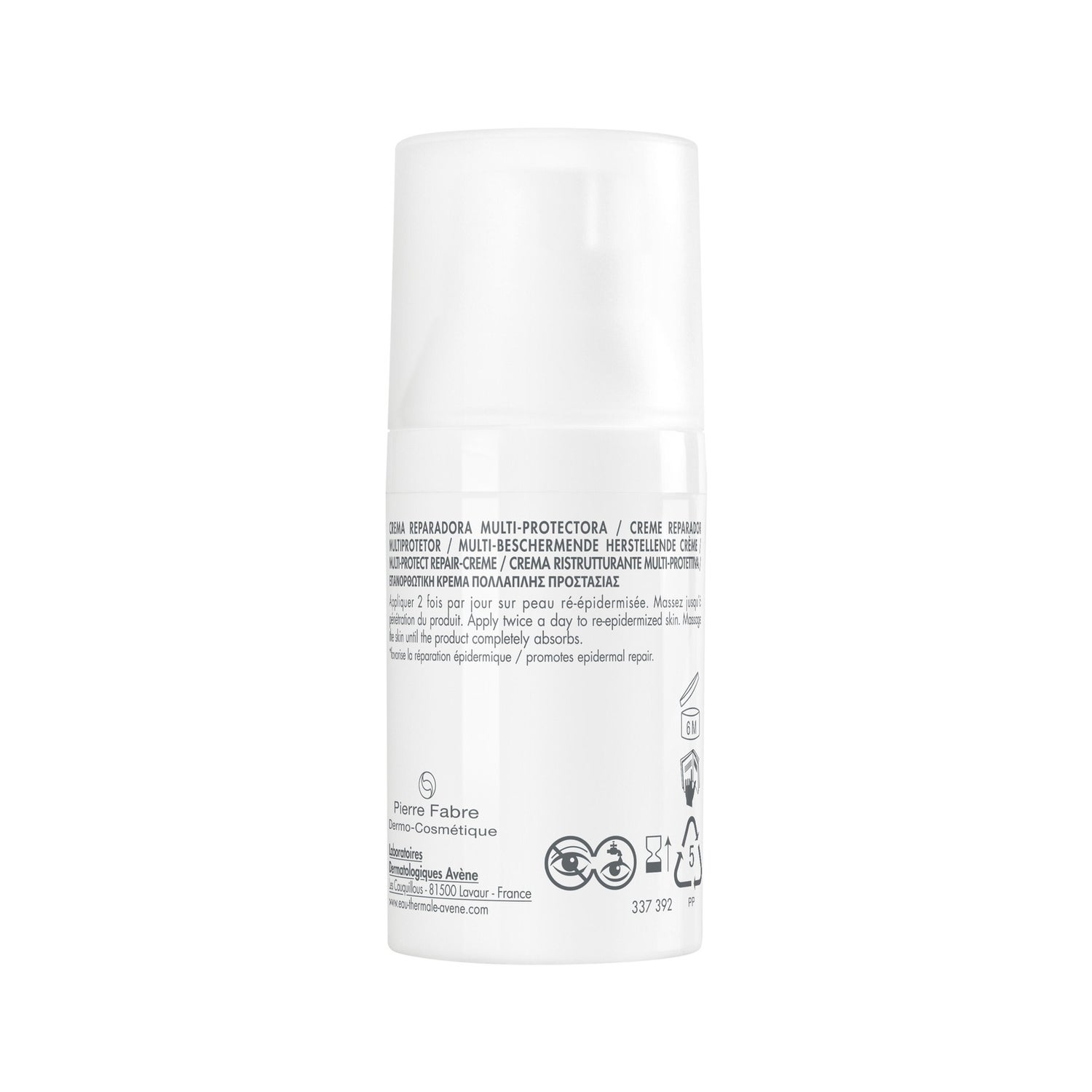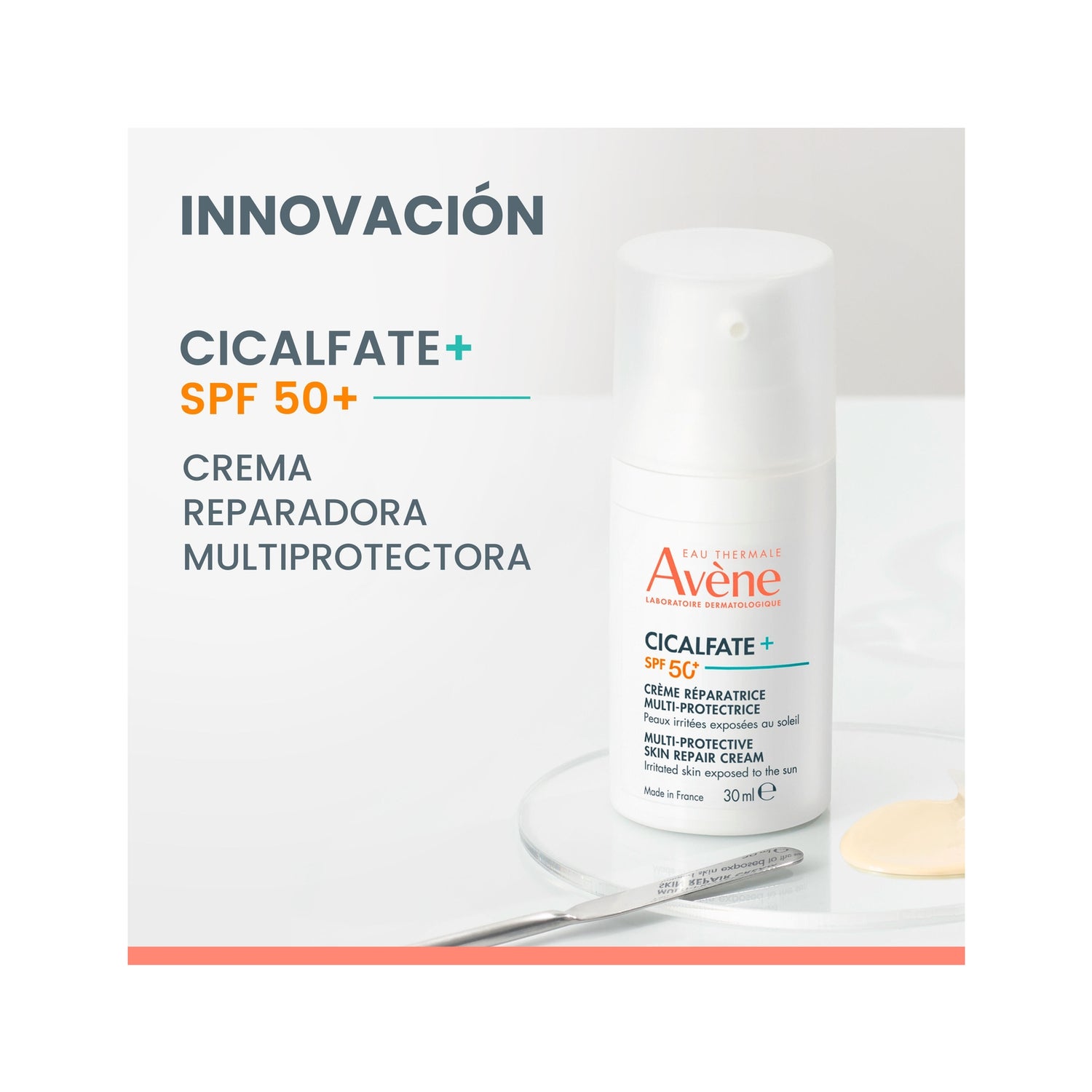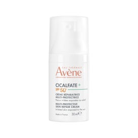 Avène Cicalfate+ Crème Réparatrice Multi Protectrice SPF50+ 30ml est une crème réparatrice multiprotectrice pour le visage et le corps, destinée aux peaux sensibles et irritées exposées au soleil. Enrichie en [C+-Restore]™ et en Eau thermale d’Avène, elle apaise, répare et protège la peau contre les UVB, UVA et la lumière bleue (HEV).