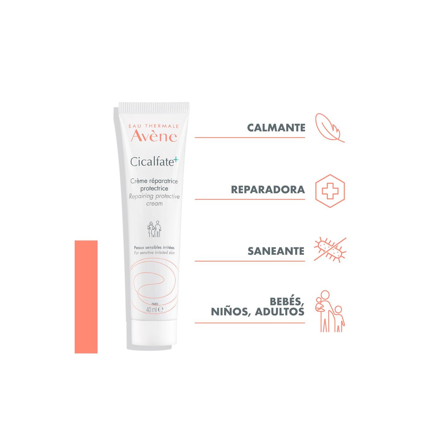 Avène Cicalfate+ Crème Réparatrice 40ml est une crème triple action formulée pour réparer, assainir et apaiser les peaux sèches et irritées. Elle limite le risque de prolifération bactérienne, favorise la réparation de l'épiderme et le renouvellement cutané, et apaise les irritations et les démangeaisons grâce à l’eau thermale d’Avène aux propriétés calmantes. Pour adultes, enfants et nourrissons, elle est particulièrement indiquée lorsque la peau présente des lésions non suintantes, lui redonnant confort et souplesse.