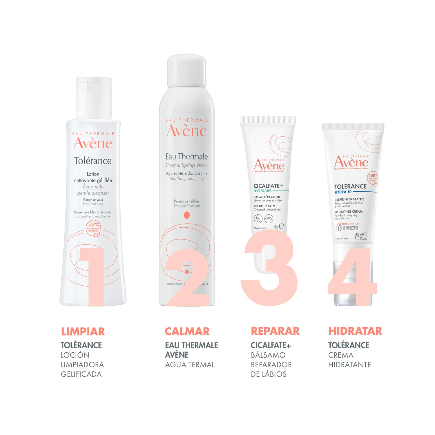 GLYCÉRINE, HUILE DE GRAINES DE RICIN (RICINUS COMMUNIS), EAU THERMALE D'AVÈNE (AVENE AQUA), CIRE D'ABEILLE (CERA ALBA), TRIGLYCÉRIDE CAPRYLIQUE/CAPRIQUE, HUILE MINÉRALE (PARAFFINUM LIQUIDUM), POLYACYLADIPATE-2 DE BISDIGLYCÉRYLE, PALMITATE D'ISOPROPYLE, HUILE DE RICIN HYDROGÉNÉE, POLYISOBUTÈNE HYDROGÉNÉ, COPOLYMÈRE PEG-45/DODÉCYLGLYCOL, OCTASULFATE DE SACCHAROSE D'ALUMINIUM, OXYDE DE ZINC, SULFATE DE CUIVRE, SULFATE DE MAGNÉSIUM, SULFATE DE ZINC.