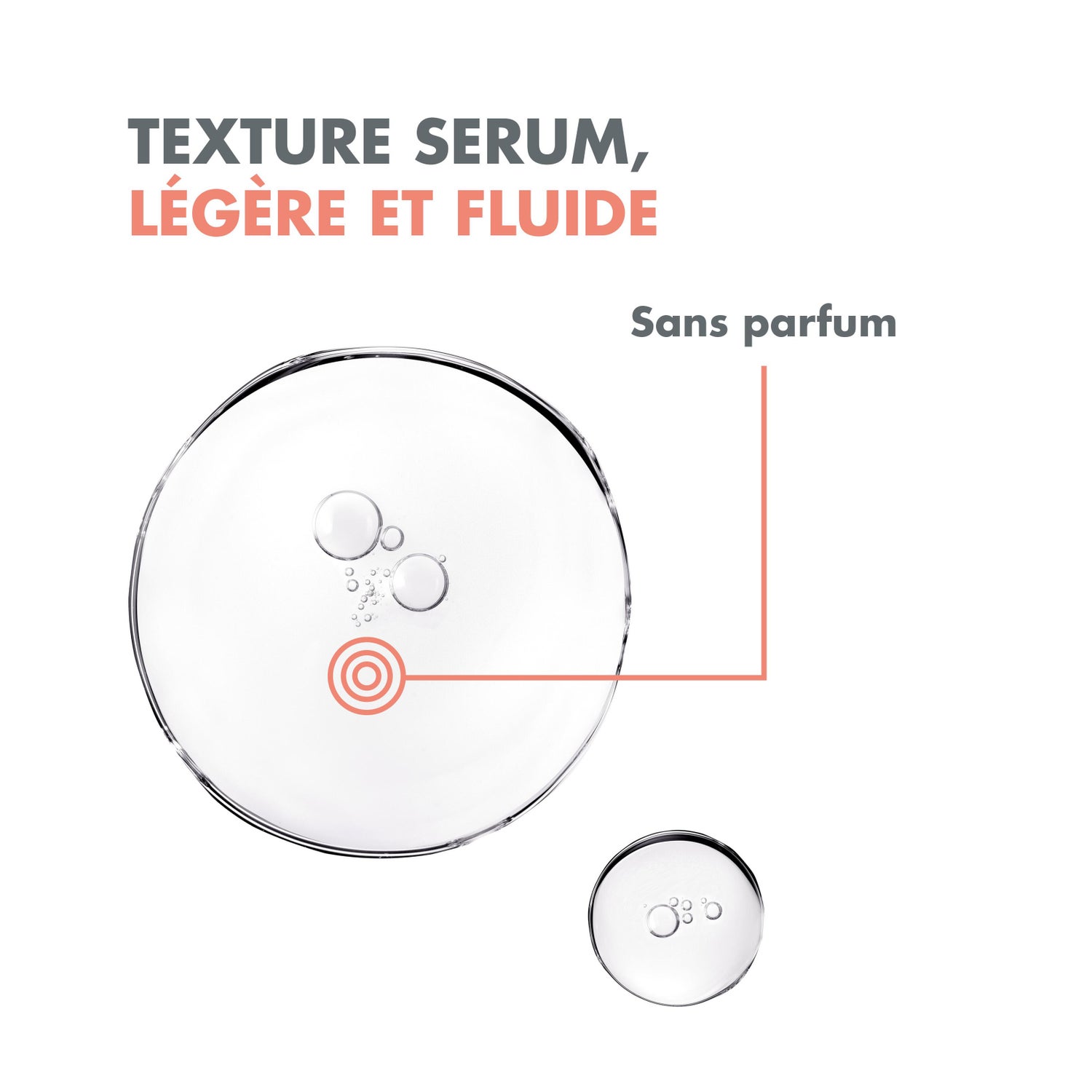 Grâce à sa combinaison d'acides lactique et succinique, il aide à estomper les pores et les imperfections. De plus, sa teneur en acide glutamique et en eau thermale d'Avène contribue respectivement à réduire l'excès de sébum, à apaiser et rééquilibrer la peau. Sa texture légère et fluide, au fini non collant, s'absorbe rapidement.