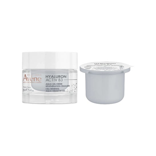 Avène Hyaluron Activ B3 Aqua-Gel 50 ml + Recharge 50 ml est un traitement régénérateur conçu pour améliorer l'apparence de la peau. Ce produit comprend :