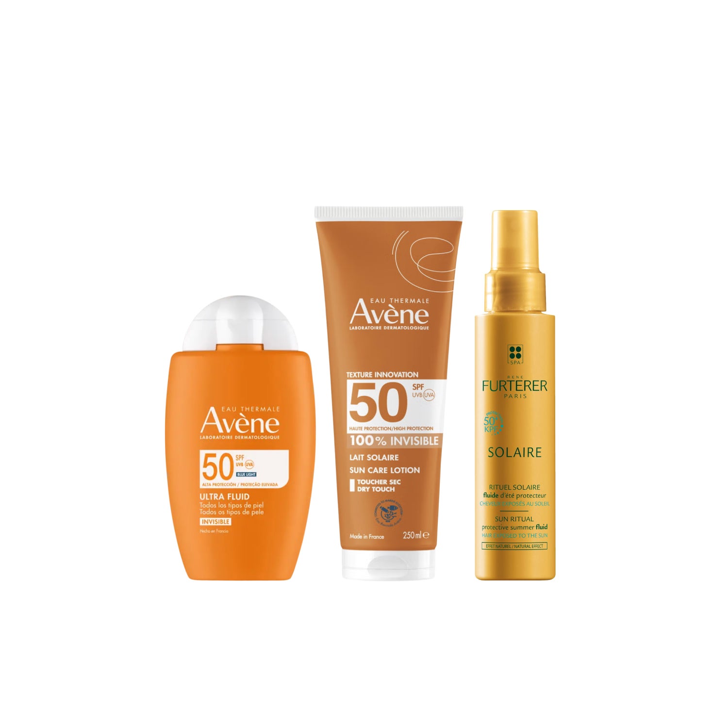 Avène Pack Ultra Fluide Invisible SPF50 + Lait Invisible SPF50 + Fluide Solaire Protecteur KPF 50+ de René Furterer contient :