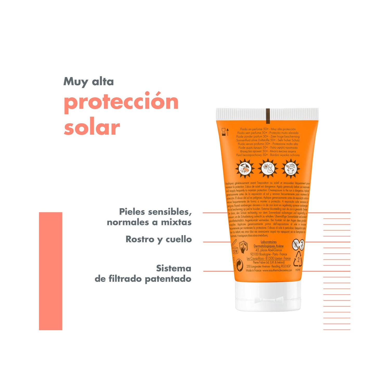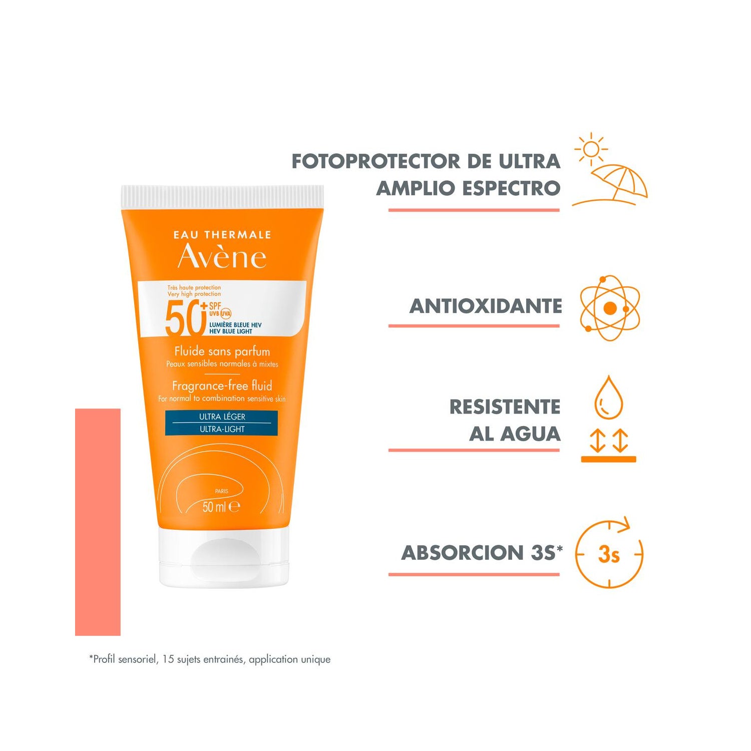 Avène Solaire Fluide Ultra-Léger SPF50+ 50ml est un écran solaire pour le visage doté d'un indice de protection élevé, spécialement conçu pour les peaux sensibles normales à mixtes.
