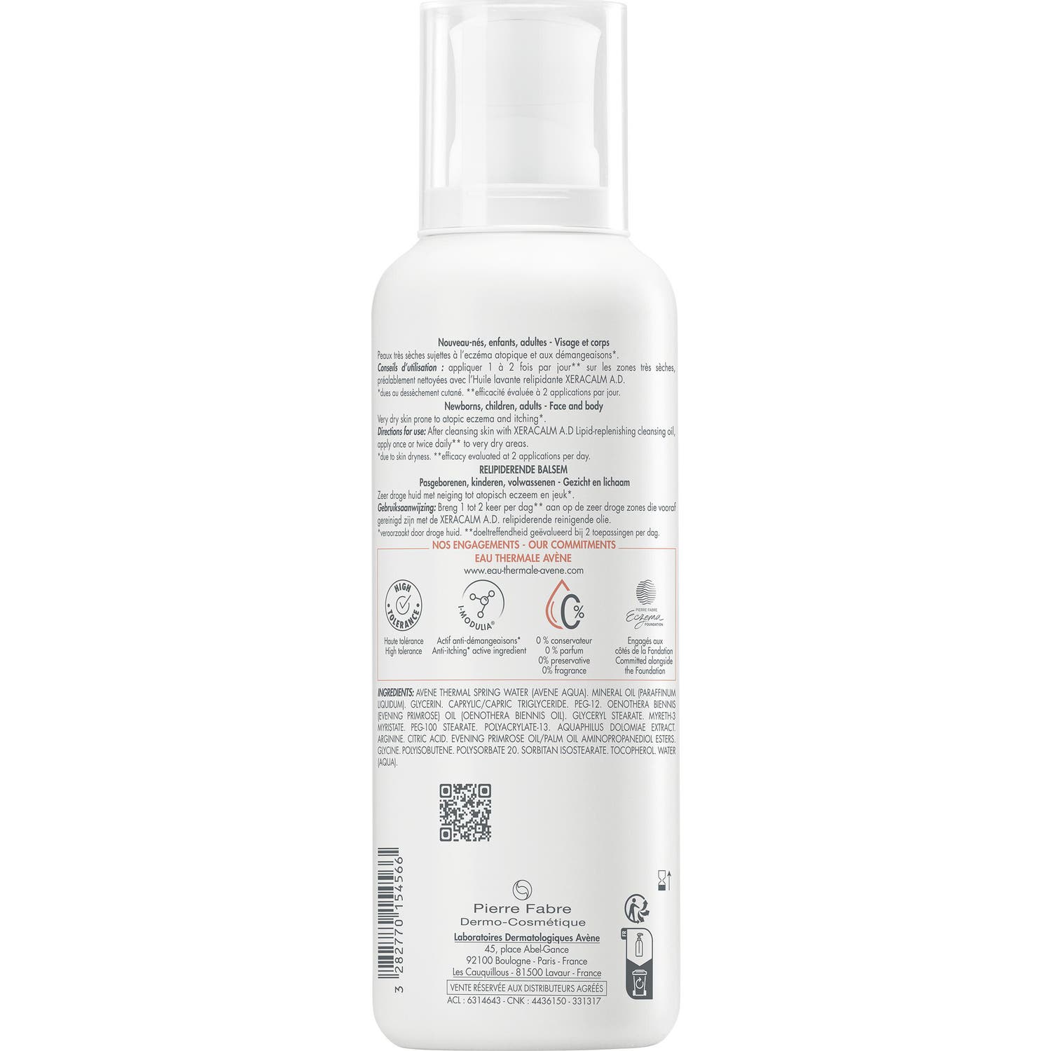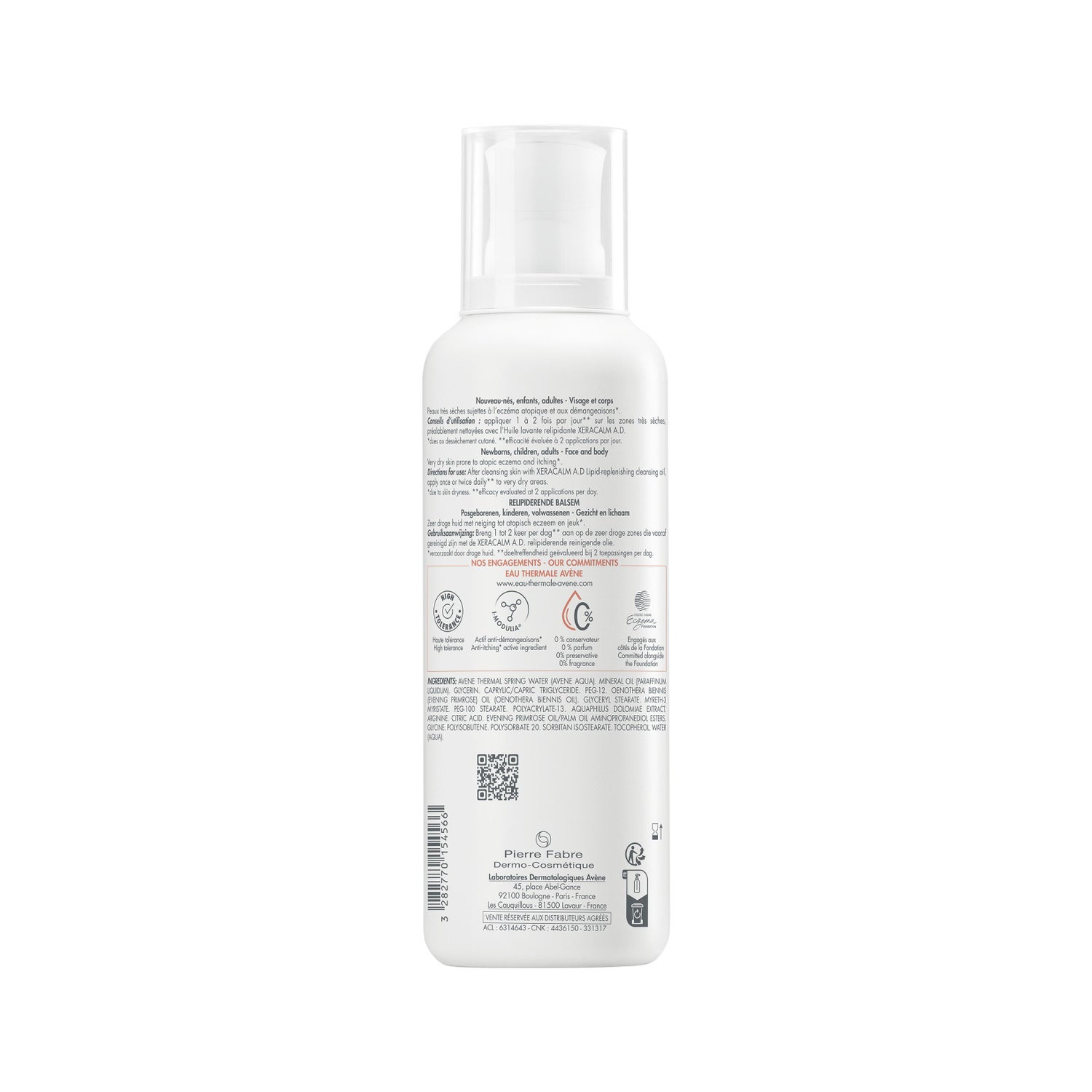 Avène Xeracalm A.D Baume Relipidant 400ml est un soin pour le visage et le corps spécialement conçu pour les peaux très sèches, sujettes à l'eczéma atopique et aux démangeaisons.