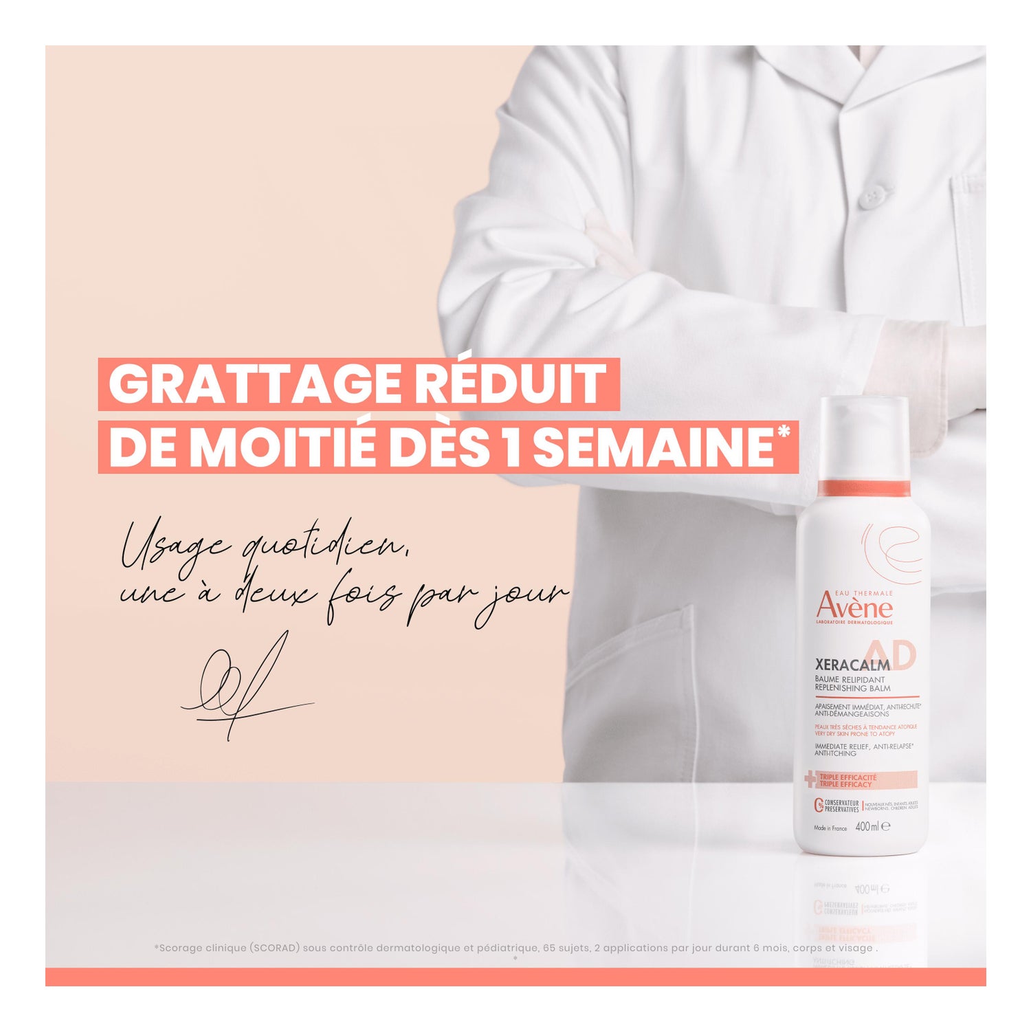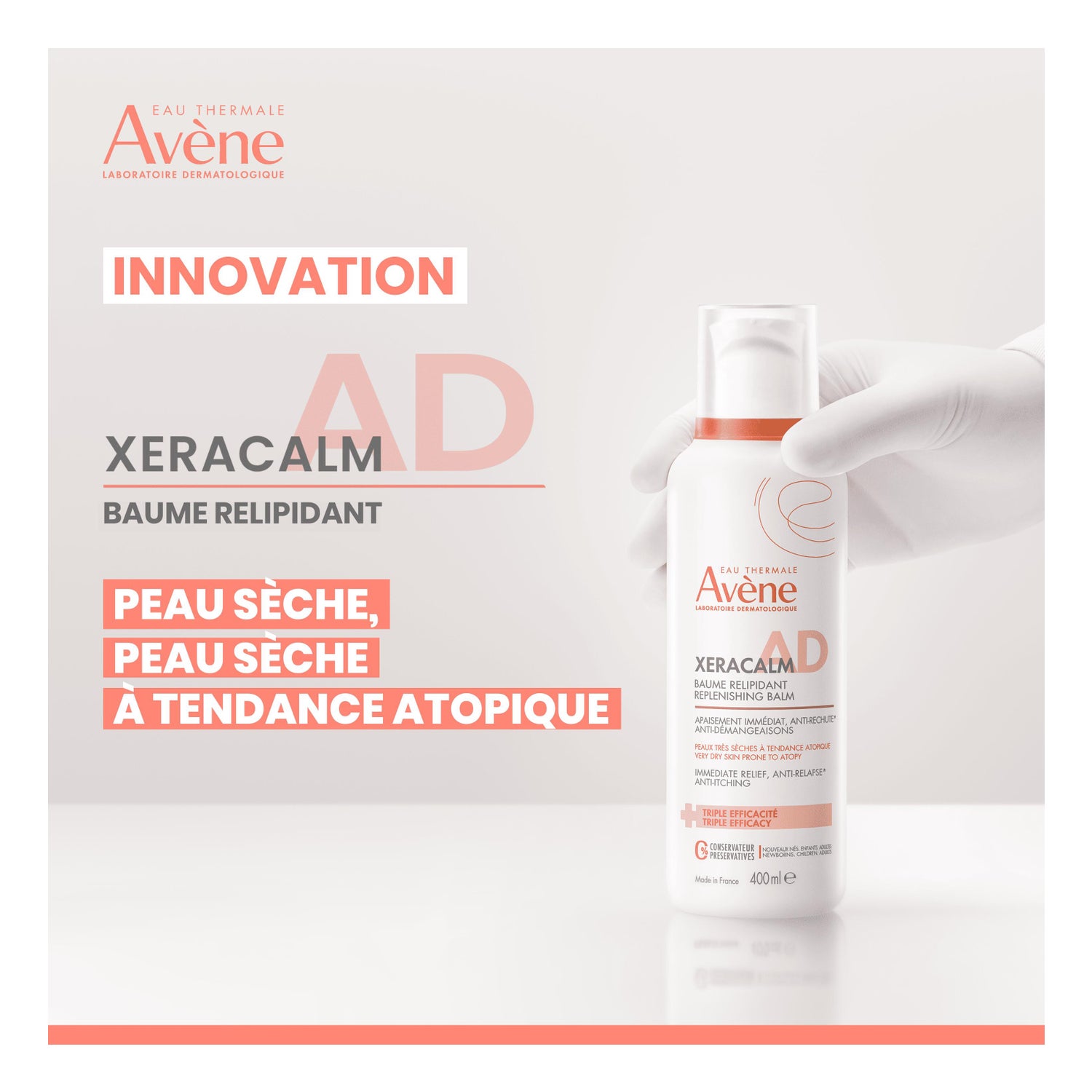Avène Xeracalm A.D. Baume Relipidant 400ml est un baume non comédogène qui aide à réparer la peau sujette aux démangeaisons ou à la dermatite atopique.