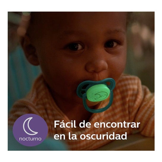 La sucette de nuit Avent convient particulièrement aux heures de sommeil dans l'obscurité. Sa poignée de sécurité unique en forme d'anneau brille dans l'obscurité, permettant à votre bébé de trouver sa sucette tout seul, ou de vous aider à le trouver sans allumer la lumière dans sa chambre ;
