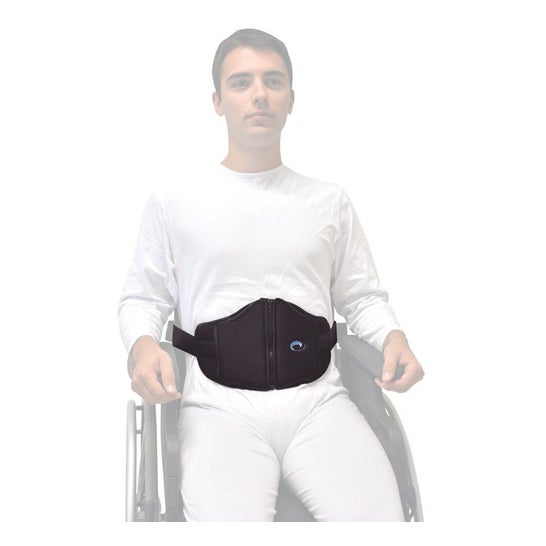 Le mécanisme d'action consiste en une bande rembourrée qui s'ajuste fermement autour de l'abdomen et se fixe à l'arrière du fauteuil avec une boucle en plastique à action rapide et un système de velcro. Cela facilite sa mise en place et son retrait de manière sécurisée. Les principaux avantages incluent :