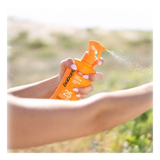 Spray solaire, formulé avec de l'aloe vera et des écrans solaires qui facilitent la protection et le soin de la peau pendant l'exposition au soleil.L'aloe vera aide à apaiser et à hydrater votre peau, en lui apportant des qualités très bénéfiques. Il contient également un accélérateur de bronzage pour une peau rapidement et uniformément bronzée. Facteur de protection, SPF25.