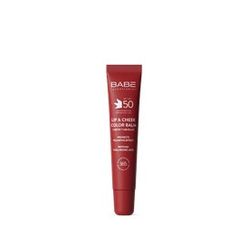 Babé Lip Cheek Color Balm Cherry SPF50 20 ml est un baume photoprotecteur de haute protection pour les lèvres et les joues. Il apporte une teinte cerise et une couleur naturelle, avec un fini non collant.