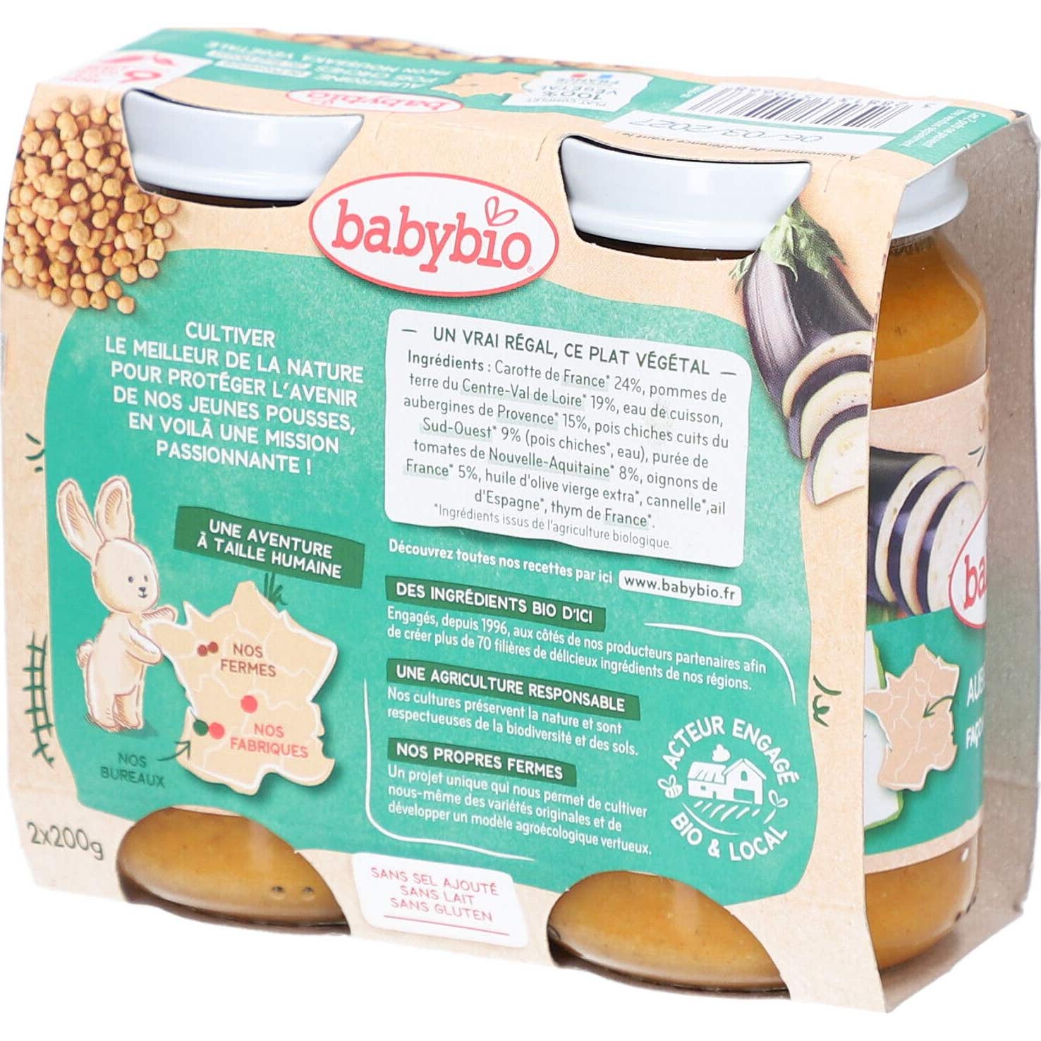 BabyBio Aubergine Pois Chiches Moussaka Végétale 6M+ Bio est une délicieuse option alimentaire pour les plus petits, conçue pour les bébés à partir de six mois. Ce produit offre une combinaison de légumineuses et de légumes, qui fournit les protéines et les fibres nécessaires au développement du bébé.
