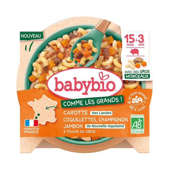BabyBio Comme Les Grands Carotte Coquillettes Champignon Jambon 200 g