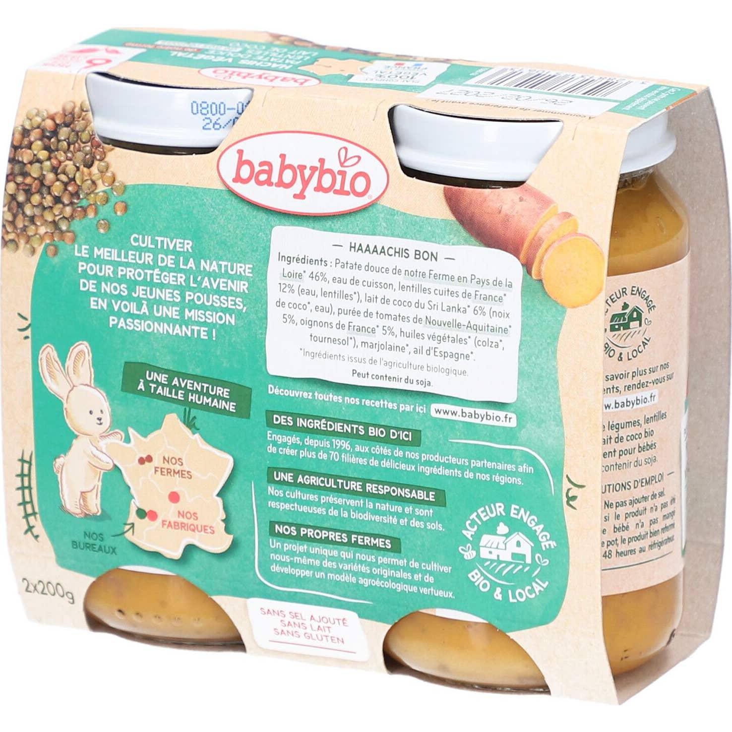BabyBio Hachis Végétal Patate Douce Lentilles Lait de Coco 6M+ 2x200 g est un aliment pour bébés qui combine des ingrédients biologiques soigneusement sélectionnés. Ce produit est conçu pour offrir une option nutritive et savoureuse, idéale pour les plus petits à partir de six mois.