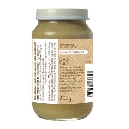 BabyBio Menu Tradition Saumon 200g est un petit pot élaboré avec de la carotte, de la pomme de terre, des petits pois, du saumon, de l'oignon et du persil, destiné aux bébés. Prêt à être consommé, cette purée est spécialement conçue pour les bébés à partir de 6 mois. Elle contient 200g.