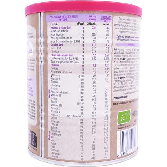 La composition de BabyBio Optima 2 inclut :