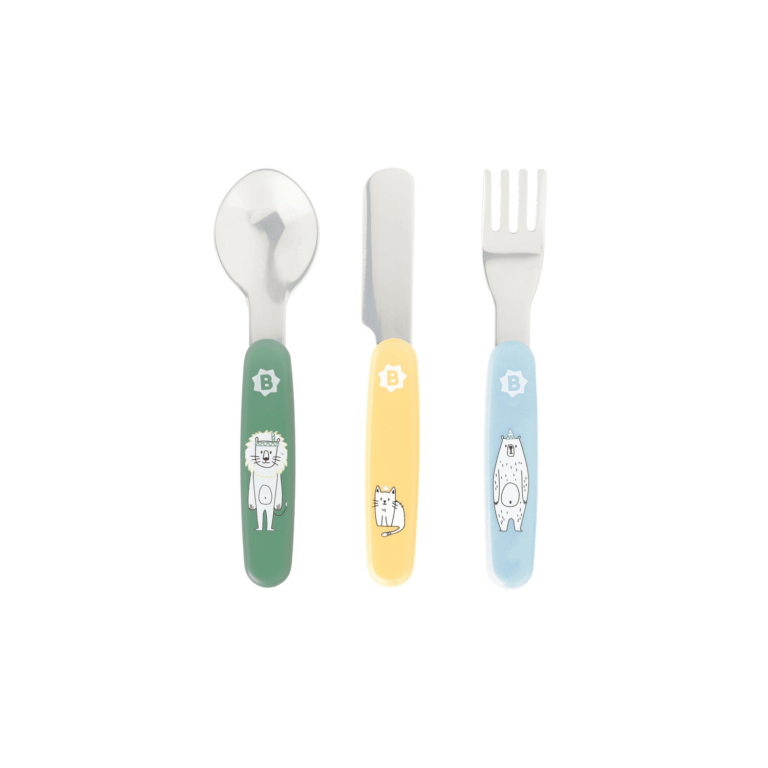 Badabulle Set Couverts en Métal 3pcs est un ensemble pratique et fonctionnel, idéal pour les enfants qui apprennent à manger de manière indépendante. Ce set est composé de :