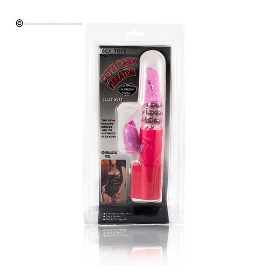 Vibrateur indiqué pour obtenir le plaisir sexuel dans la zone vaginale. Il est conçu pour être utilisé aussi bien pour la pénétration vaginale que pour la pénétration anale. Il dispose d'une vibration avec 20 motifs, d'un régulateur de vitesse, d'une oscillation et d'une rotation pour la pénétration et d'un autre vibrateur pour encourager le clitoris à travers une langue douce. Fabriqué avec de la gelée douce et une texture gaufrée. Alimenté par 3 piles AAA. Taille : 23x4cm.Couleur : rose.