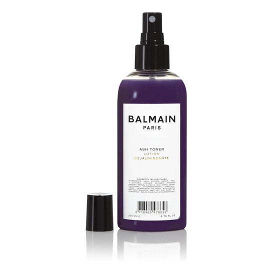 Balmain Ash Toner Lotion 200ml est un après-shampoing conçu pour fournir une teinte grise aux cheveux blonds, colorés ou méchés. Sa composition est enrichie en pigments violets, ce qui aide à neutraliser les tons jaunes et à améliorer la luminosité des cheveux.