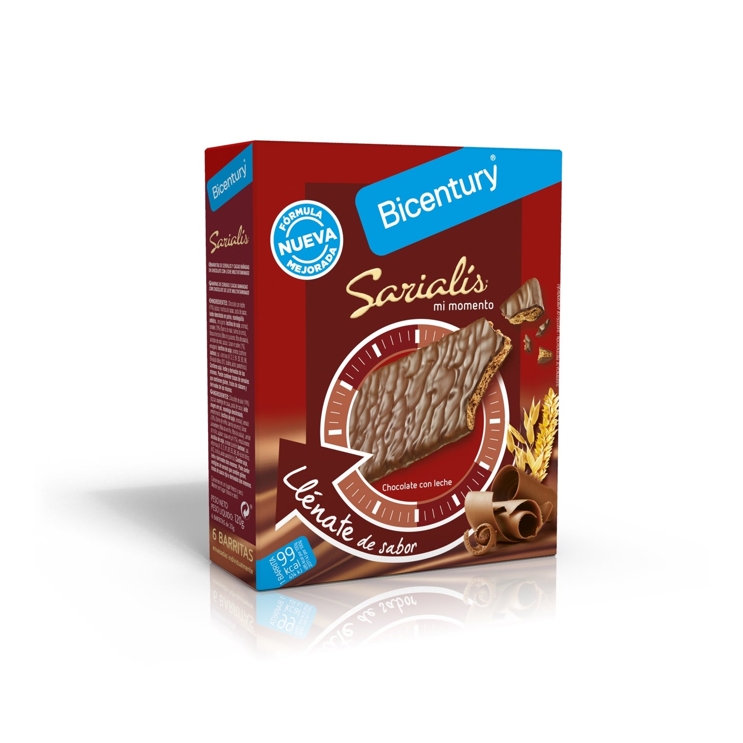 Barres de céréales enrobées de chocolat noir au lait. Composé de chocolat pur à 75%, de farine de riz, de fibres de bambou, de sucre et de dérivés du soja. Enrichi en vitamines B, A, D et E. Le chocolat a des propriétés cardioprotectrices et aide à oxygéner les cellules du corps. Il aide à réduire le stress. Recommandé comme en-cas sain, pour le petit-déjeuner ou le goûter. Sans gluten, convient aux coeliaques. Contient 6 unités.