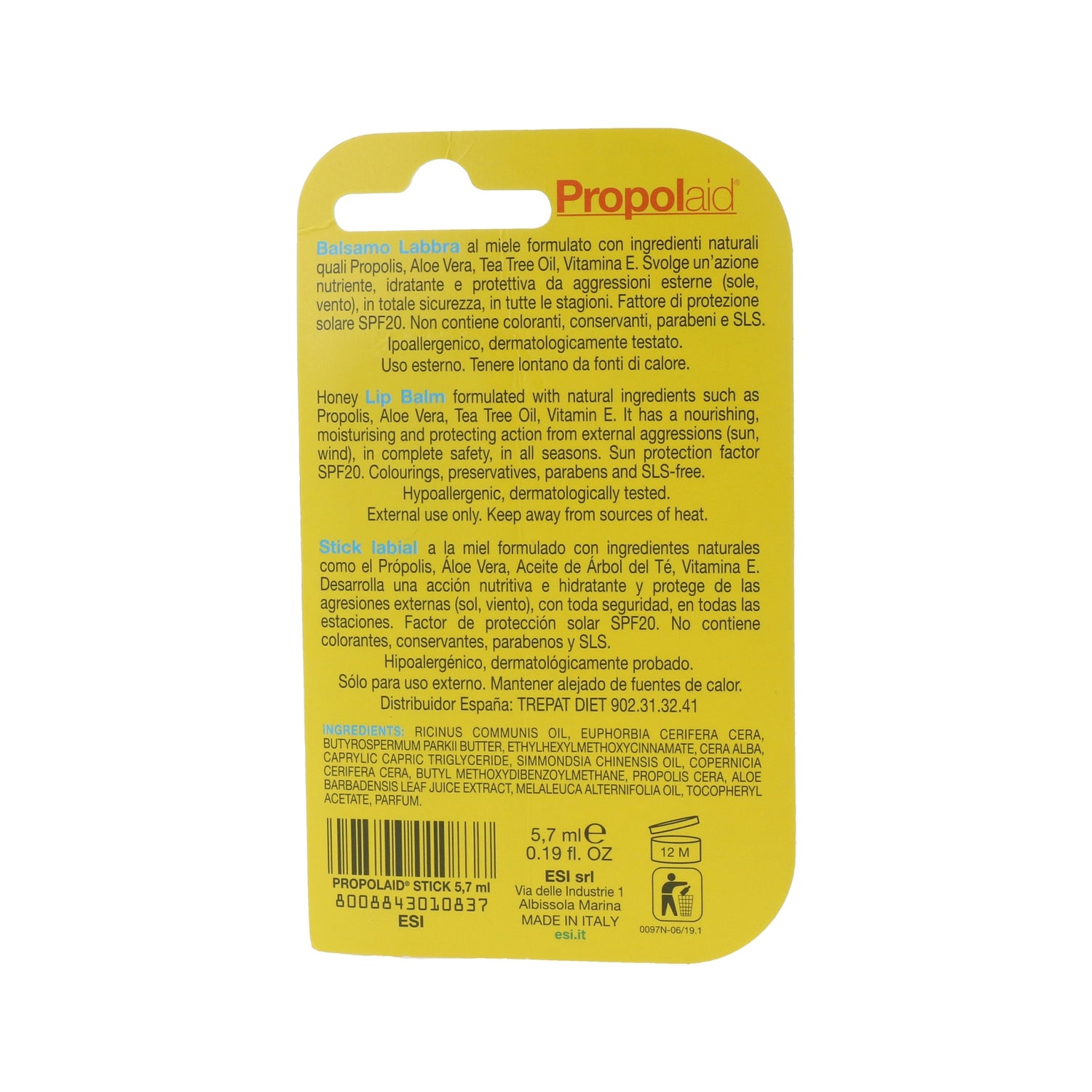 Propolaid propose son baume à lèvres à base de propolis, d'aloe vera, d'huile de jojoba, de vitamine E et d'huile d'arbre à thé avec lesquels vous pouvez non seulement hydrater vos lèvres, mais aussi les protéger du soleil et prévenir leur oxydation cellulaire ;