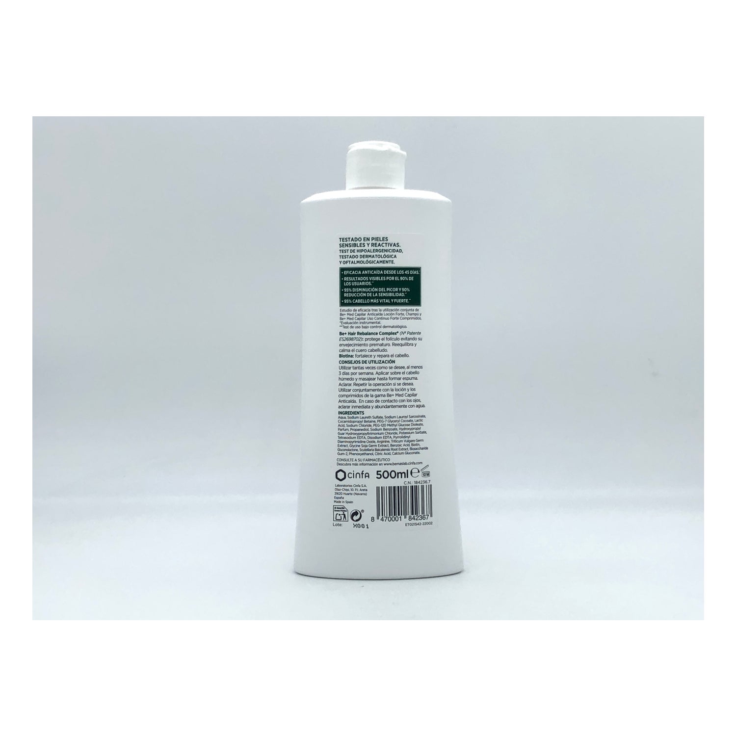 Be+ Hair Loss Strengthening Shampoo 500ml est un shampooing conçu pour préparer les cheveux aux traitements anti-chute grâce à sa composition à base de Be+ Hair Rebalance Complex, Kopexil et Biotin, qui aide à rendre les cheveux doux, forts et sains, et convient aux hommes et aux femmes.