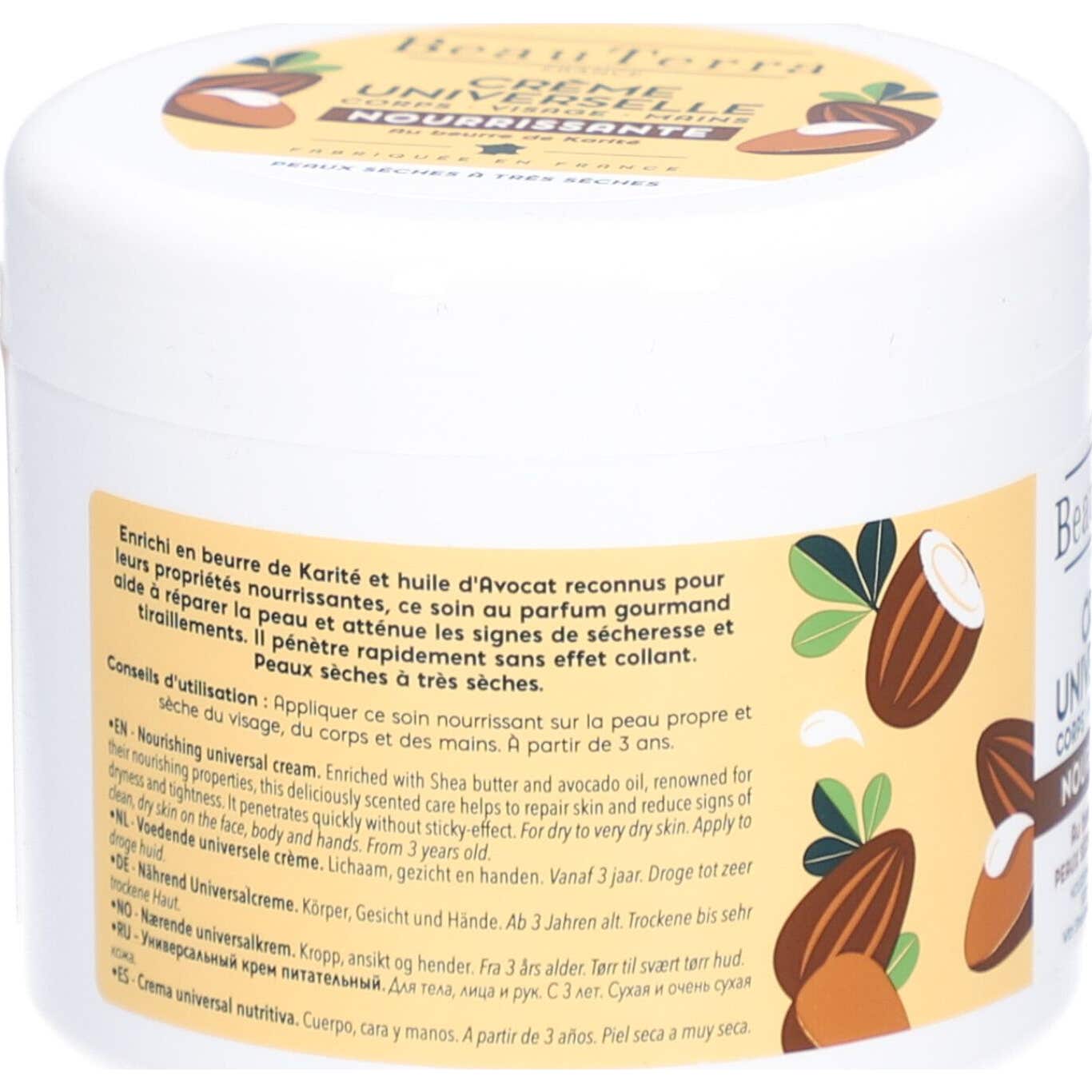Beauterra Crème Universelle Nutritive Beurre de Karité de 400 ml est une crème corporelle conçue spécifiquement pour les peaux sèches et très sèches. Sa formulation offre une nutrition intense et contribue à la réparation profonde de la peau.