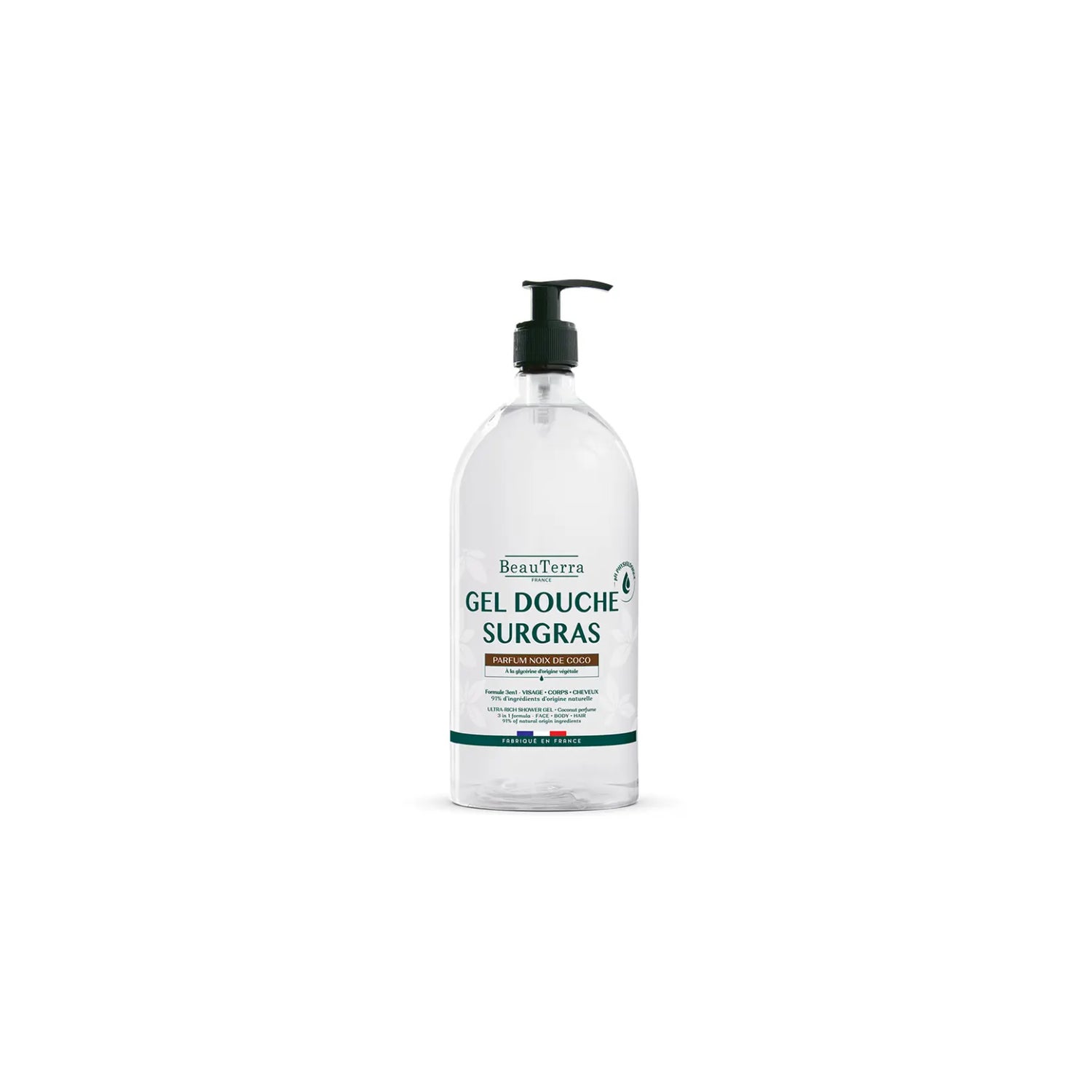Beauterra Gel Douche Surgras Coco 1000 ml est un gel douche 3 en 1 pour nettoyer le visage, le corps et les cheveux sans assécher. Il est conçu pour toute la famille, y compris les peaux sensibles et les enfants à partir de 3 ans. Il apporte un arôme exotique de coco.