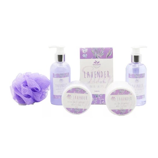 Becasan Nature Set Tissu Rêves de Lavande Le panier Becasan Nature Tissu Rêves de Lavande est un ensemble exclusif qui te plonge dans une ambiance de tranquillité et de renouveau. Il comprend divers produits pour le bain et le voyage qui t'offriront une expérience unique pleine de bien-être : - Gel douche 200 ml - Lotion corporelle 120 ml - Savon pour les mains 200 ml - Gommage corporel 120 ml - Sels de bain 200 g - Éponge Ces articles sont enrichis des propriétés relaxantes de la lavande, t'enveloppant d'une fragrance revitalisante. La lavande est reconnue pour ses bienfaits favorisant le repos et réduisant le stress, te procurant une sensation de calme incomparable.