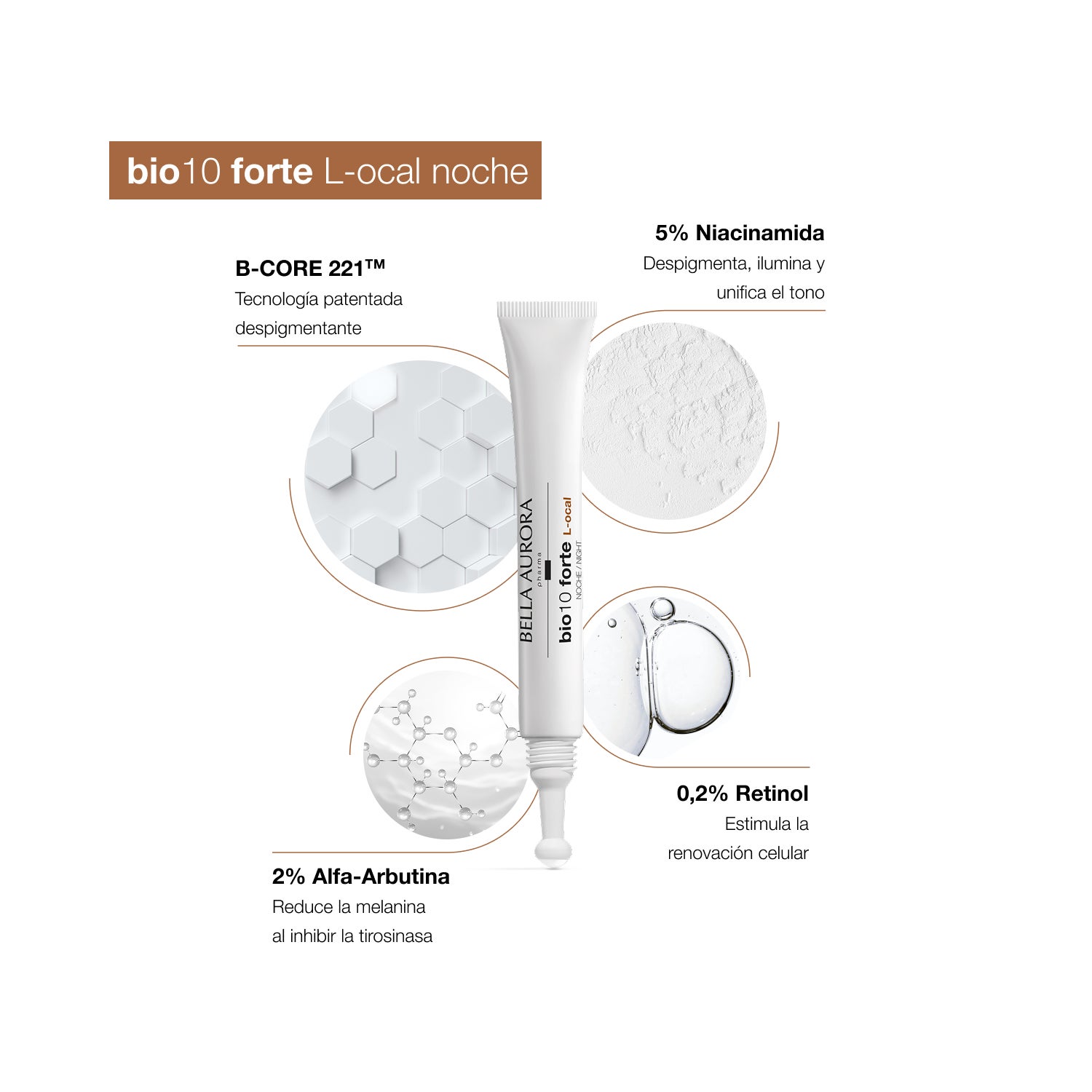Sérum dépigmentant intensif nocturne pour petites taches sombres localisées. Agit directement sur les taches. Unifie le teint, illumine la peau et corrige avec une précision maximale pendant que tu dors. Résultats visibles en 4 semaines.