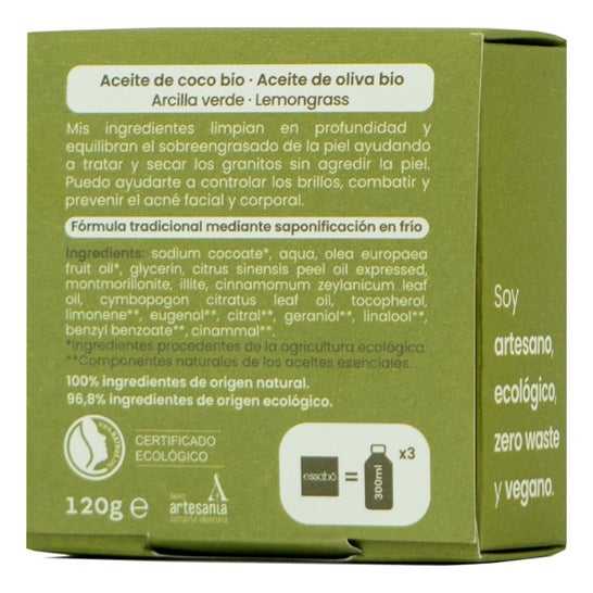 Pain de savon solide biologique fait à la main, avec le certificat vert qui garantit qu'il est fabriqué avec des produits naturels et biologiques. Il contient une base d'huile de noix de coco des Philippines et d'huile d'olive espagnole, enrichie de beurre de cacao du Brésil et d'huile de jojoba d'Argentine. Il possède des propriétés nourrissantes, régénératrices et antioxydantes qui laissent la peau radieuse et soignée.