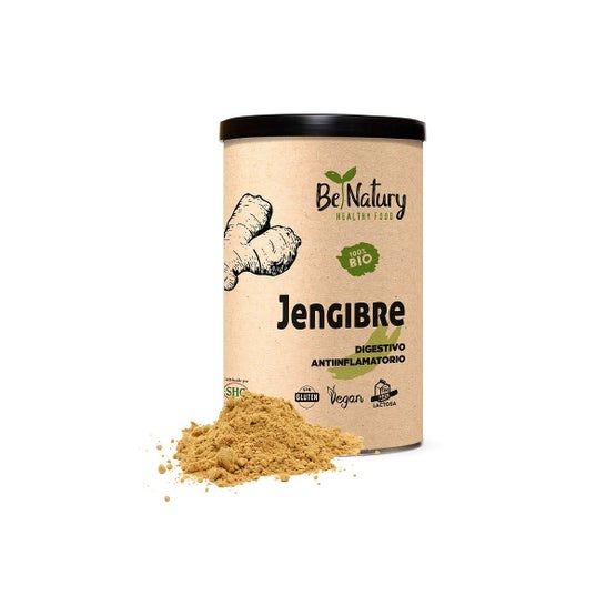 BeNatury Poudre de Gingembre 125 g est un complément en poudre à base de gingembre. Sa tige se développe principalement sous terre, où elle peut atteindre jusqu'à 90 cm de longueur. Grâce à son arôme caractéristique et à son goût épicé, il est très populaire dans la cuisine asiatique et agit comme digestif. De plus, il a une haute teneur en protéines et en vitamine C et est également utilisé comme tonique vivifiant, expectorant et pour prévenir les vertiges.