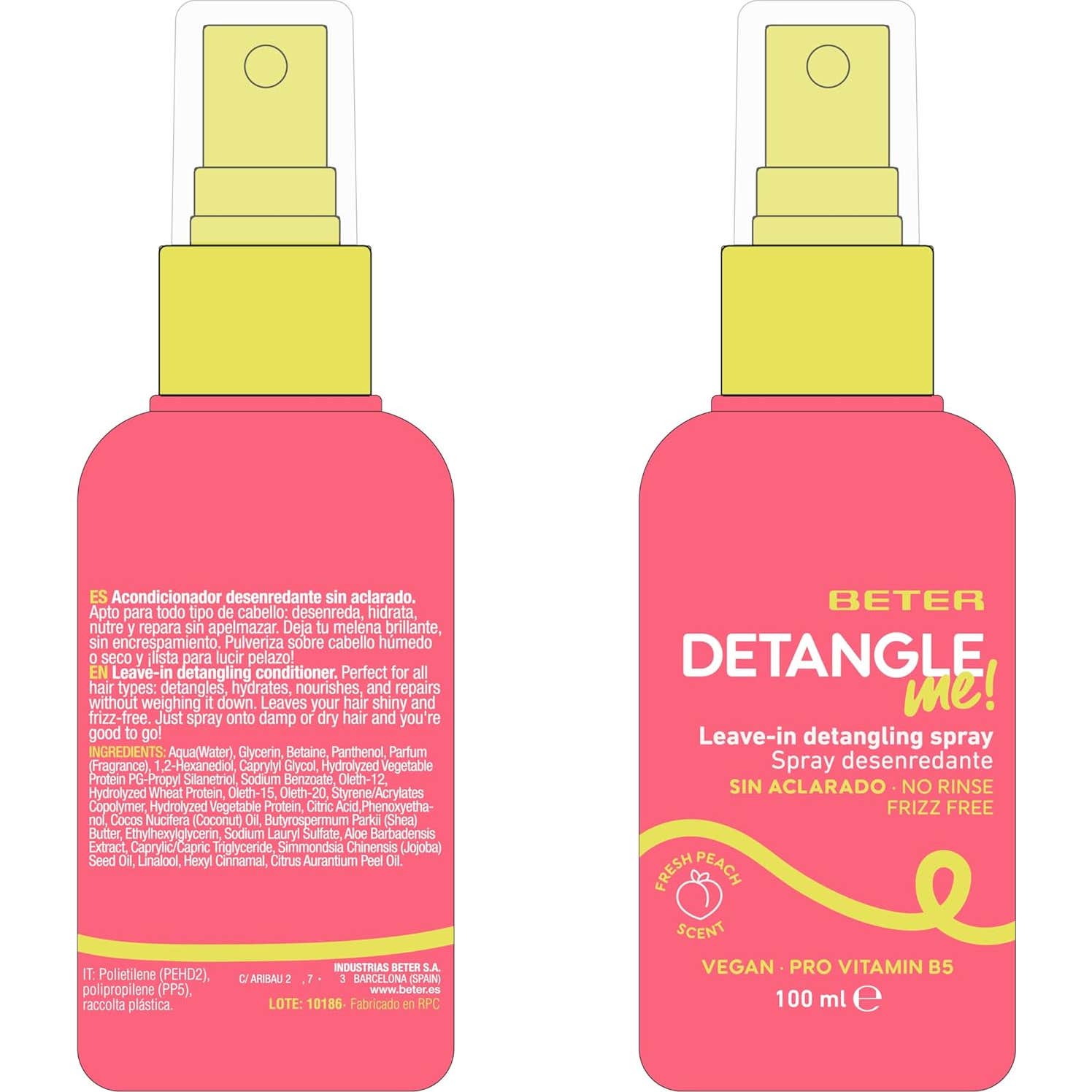 Beter Detangling Spray Leave In Detangle Me 100 ml est un démêlant sans rinçage qui facilite le coiffage et aide à éliminer les nœuds de manière douce et immédiate, sans besoin de rinçage.