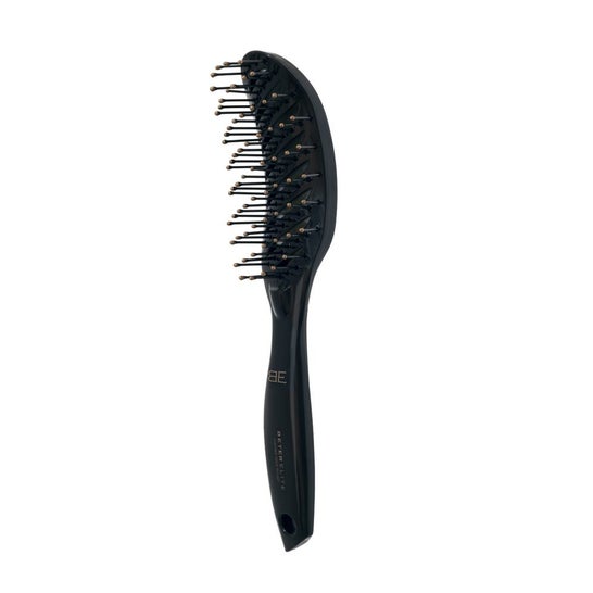 Brosse avec un design ergonomique très spécial qui offre une grande légèreté et confort, s'adapte à la forme courbe de la tête facilitant le démêlage et le séchage des cheveux.