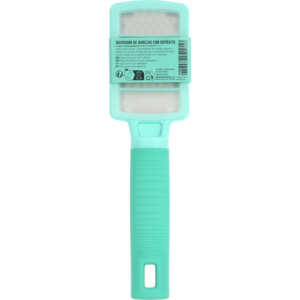 Beter Feet Free Inox Râpeur de Callos avec Réservoir est un outil conçu pour éliminer les callosités et les durcissements sur la plante des pieds et les talons de manière sûre et efficace. Équipé de micro-lames en acier inoxydable, ce râpeur facilite le retrait de la peau morte, offrant des résultats optimaux. Il est recommandé de l'utiliser après la douche, car cela aide à adoucir la peau durcie.
