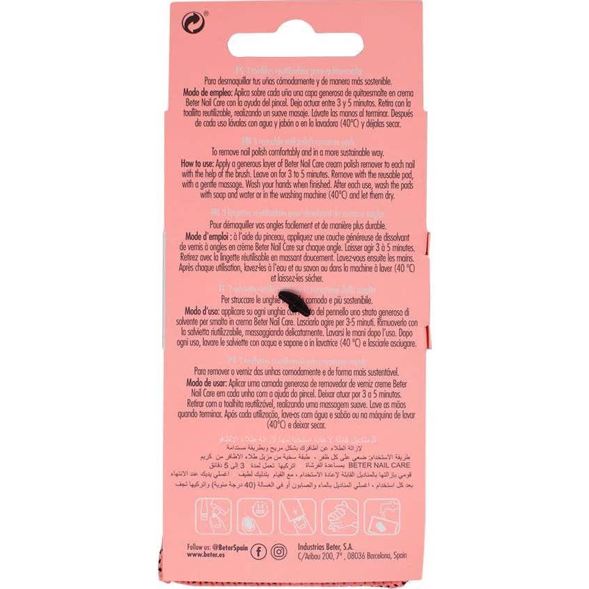 Beter Lingettes Démaquillantes Réutilisables est un produit conçu pour faciliter l'élimination du vernis à ongles. Ces lingettes sont fabriquées avec un tissu spécial qui permet de retirer le vernis de manière efficace.